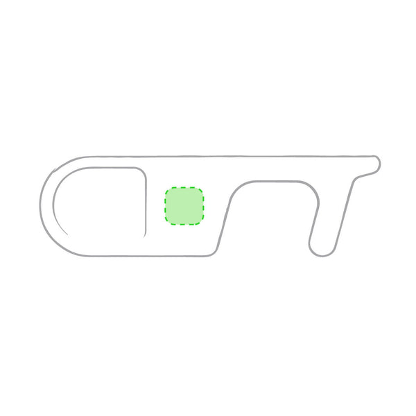 Hygienic, antibacterial and anti-contact safety key ring, made of resistant ABS with a solid finishing. Specially designed to avoid touching public usage surfaces with your hands (door handles, switches, public use taps, ATMs…). With comfortable cut-out for the finger and presented in an individual bag. Recommended for pad printing.Products with antibacterial treatments are able to drastically reduce the bacterial levels present on the surfaces of the materials, thanks to the addition of permanent static microbial agents, with high effectiveness in inhibiting and preventing bacterial contamination.Item according to the ISO 22196 standard, which determines the antibacterial activity in plastic materials and non-porous surfaces. This allows us to know the effectiveness of microbial inhibition that additives have on treated objects by means of a quantitave evaluation.