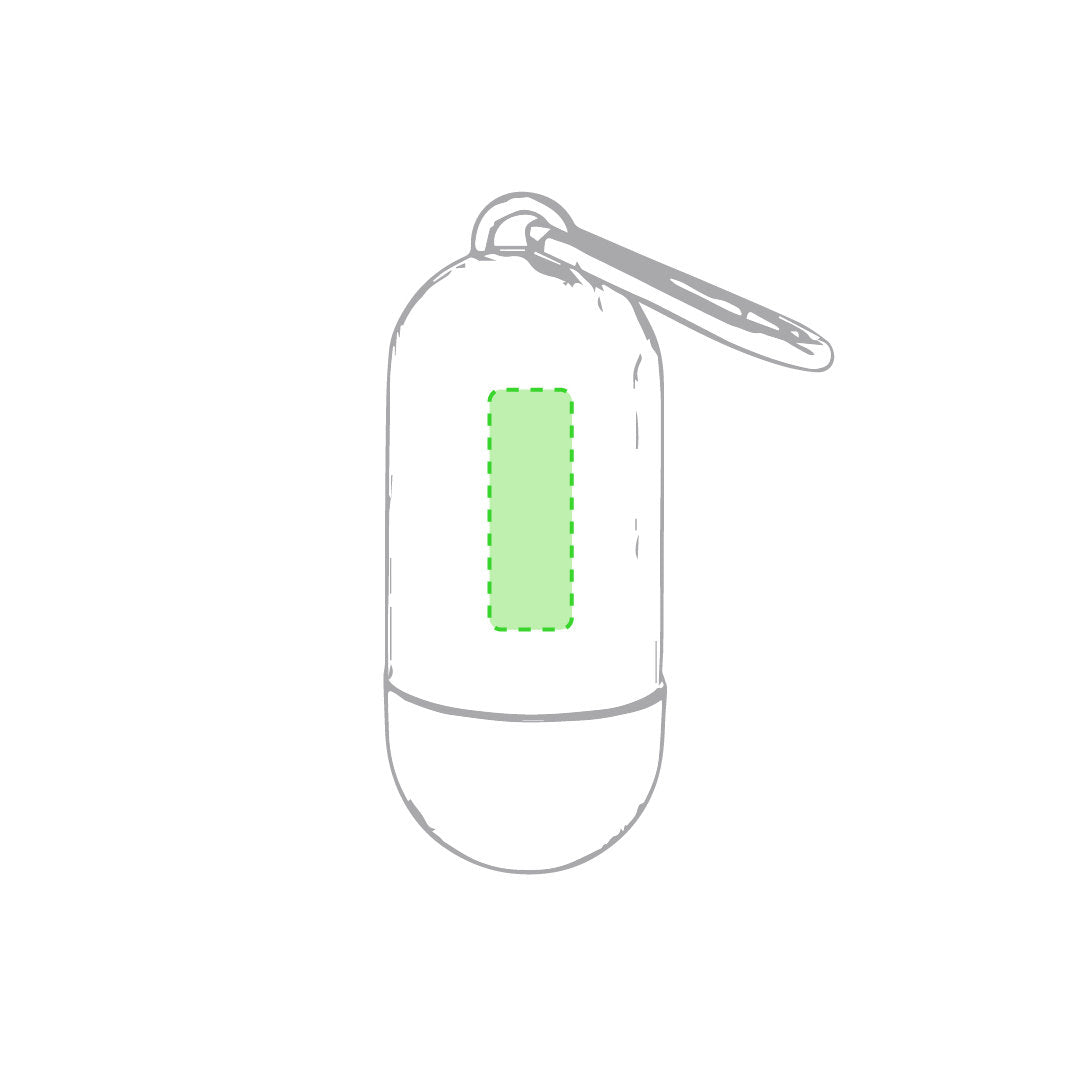 Antibacterial, pets bag dispenser, with resistant body in a solid finishing. Carrying carabiner in matching color, with 15 biodegradable bags included. Presented in an individual bag.Products with antibacterial treatments are able to drastically reduce the bacterial levels present on the surfaces of the materials, thanks to the addition of permanent static microbial agents, with high effectiveness in inhibiting and preventing bacterial contamination.Item according to the ISO 22196 standard, which determines the antibacterial activity in plastic materials and non-porous surfaces. This allows us to know the effectiveness of microbial inhibition that additives have on treated objects by means of a quantitave evaluation.