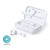 Antibacterial earphones with Bluetooth® 5.0 connection in an elegant white color design in glossy finish. Ergonomically designed, including an integrated, touch control button in the earphone, with matching color charging base. Hands free function and rechargeable micro USB cable included. Presented in an individual deluxe case with hinged cover and in an attractive design box. Products with antibacterial treatments are able to drastically reduce the bacterial levels present on the surfaces of the materials, thanks to the addition of permanent static microbial agents, with high effectiveness in inhibiting and preventing bacterial contamination. Item according to the ISO 22196 standard, which determines the antibacterial activity in plastic materials and non-porous surfaces. This allows us to know the effectiveness of microbial inhibition that additives have on treated objects by means of a quantitave evaluation.