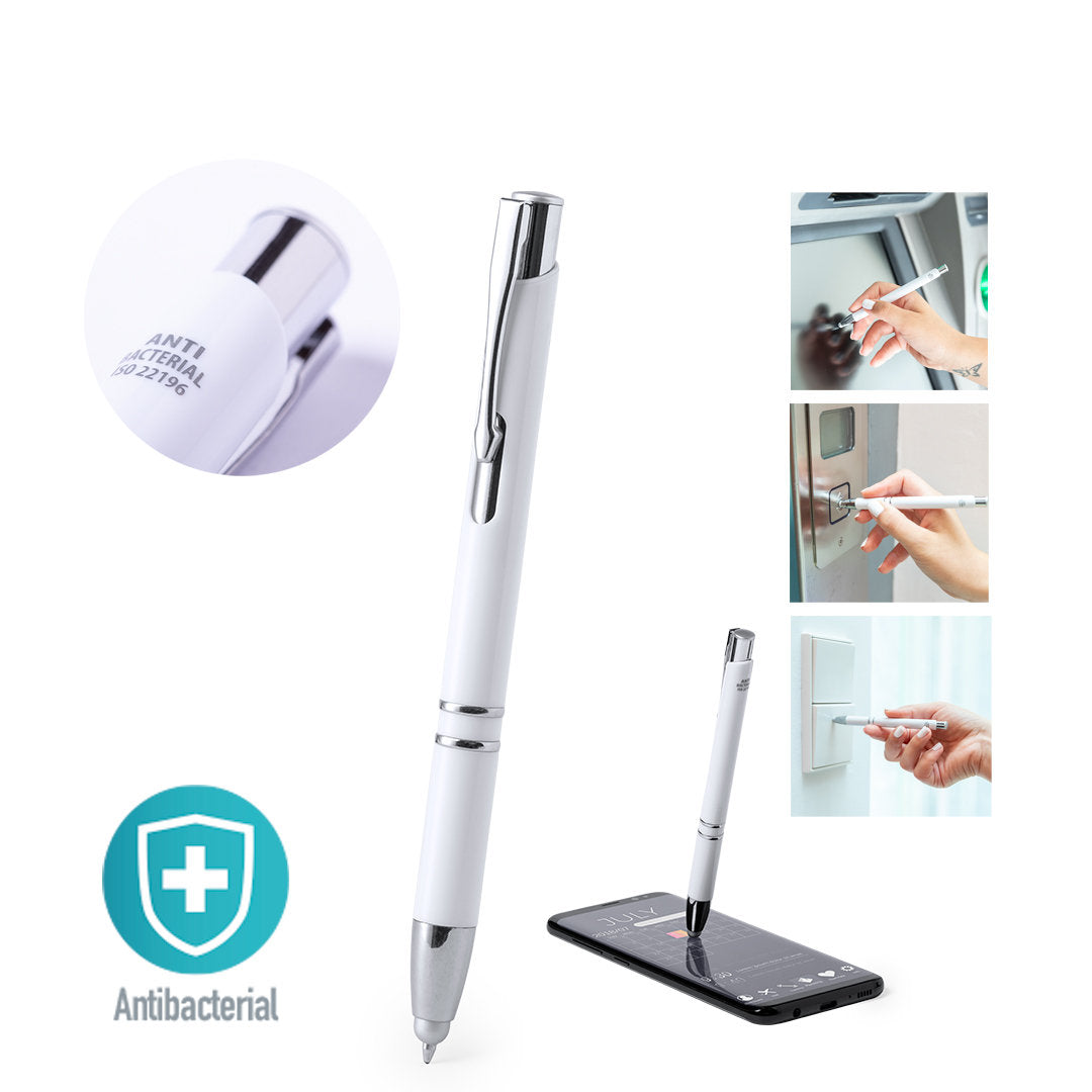 Antibacterial ball pen with push-up mechanism and grey color pointer. Smooth finish, with jumbo cartridge and blue ink. Products with antibacterial treatments are able to drastically reduce the bacterial levels present on the surfaces of the materials, thanks to the addition of permanent static microbial agents, with high effectiveness in inhibiting and preventing bacterial contamination. Item according to the ISO 22196 standard, which determines the antibacterial activity in plastic materials and non-porous surfaces. This allows us to know the effectiveness of microbial inhibition that additives have on treated objects by means of a quantitave evaluation.