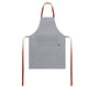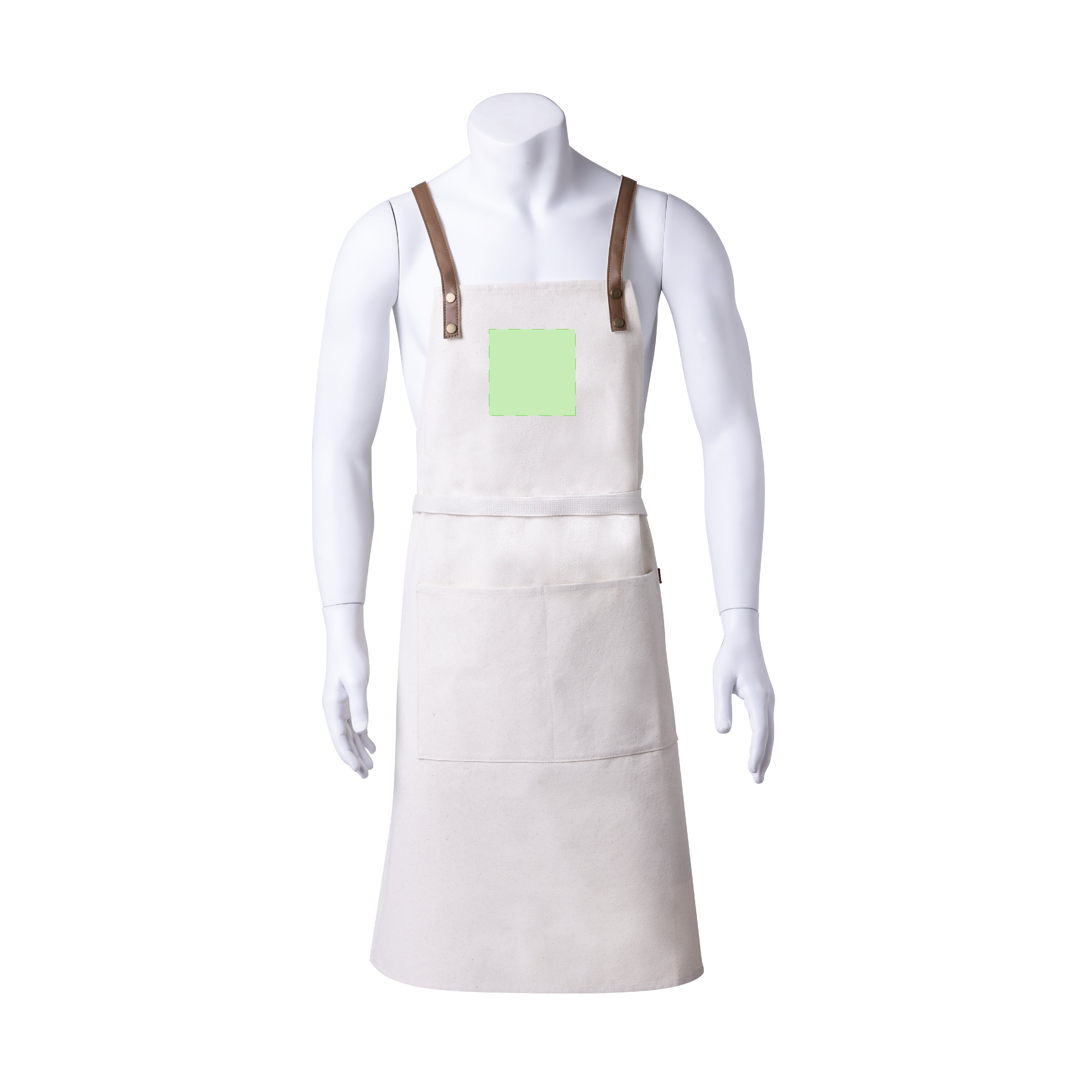 High-quality apron in resistant cotton canvas material, 340g/m2, with reinforced seams. Cut under the knee, with resistant PU leather straps and triple adjustment: neck, back and waist. With front pocket, PU leather accessory and metal rivets for reinforcement.