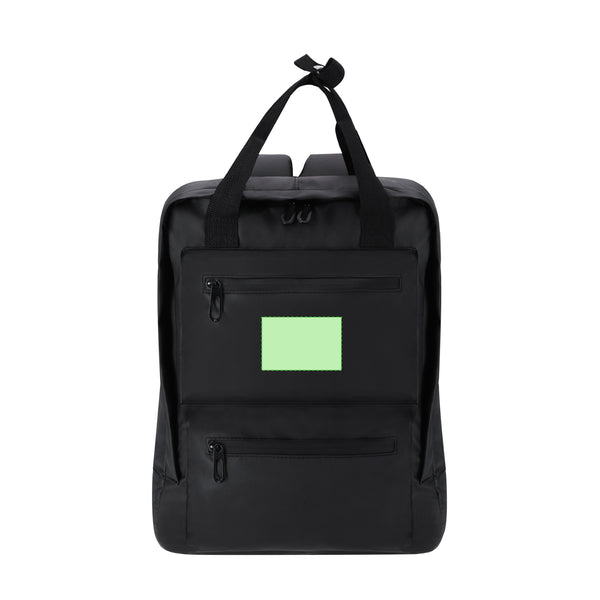 Backpack made of durable PU. Equipped with a main compartment and two front pockets for quick access. Invisible zipper closures. Includes two side pockets and double carrying handles, reinforced at the top with a connecting strap for easy transport. Equipped with a padded interior pocket for laptops up to 15 inches and a tablet pocket up to 10 inches. Padded, breathable, and adjustable back and shoulder straps.