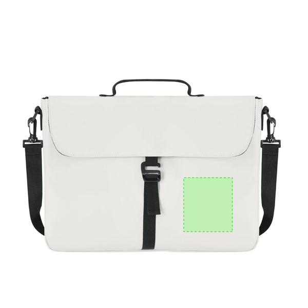 Soft PU document holder. Large capacity inside with padded compartment for laptops up to 15 inches. With buckle closure system. Including removable, padded carrying strap.