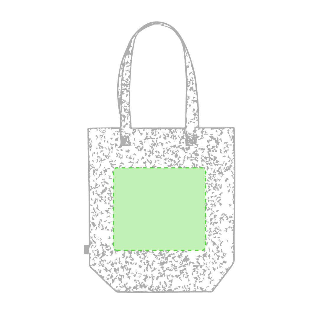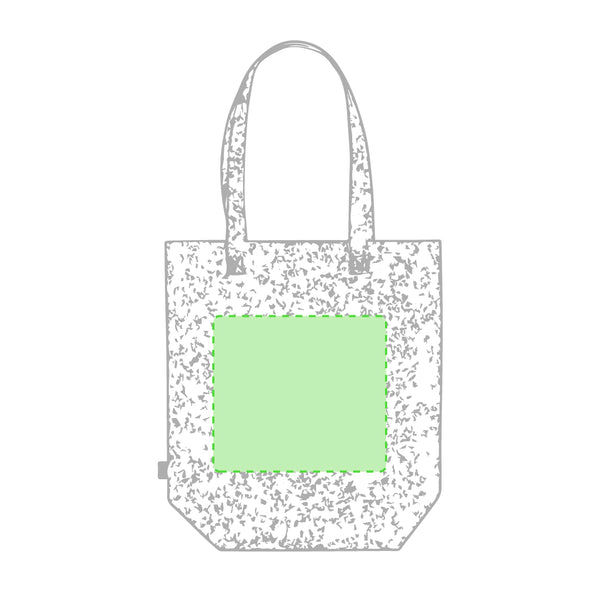 Nature line bag in resistant, recycled RPET felt. The result of the combination of the recycling processes of plastic materials along with the millenary technique of felt manufacturing, resulting in an eco-trend material that, in addition to being of recycled origin, also becomes recyclable. Rectangular design, with gusset at the base, extra long and extra wide reinforced handles (70 x 3.5 cm). Resistance up to 6kg, with RPET emblem on outside label.