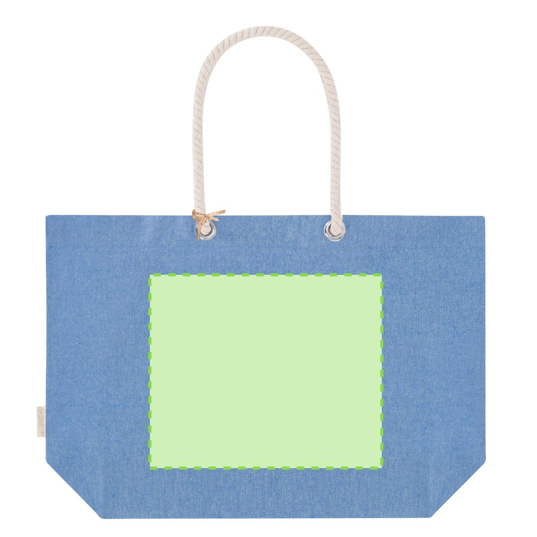 Bag made mainly from Recycled Cotton of 220g/m2. With gusset and long cotton handles in natural color and braided design. Includes recycled cotton label.