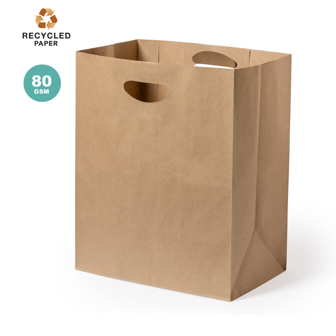 Nature line, lightweight bag made of 80g/m2 recycled paper. With original die-cut handle and gusset.
