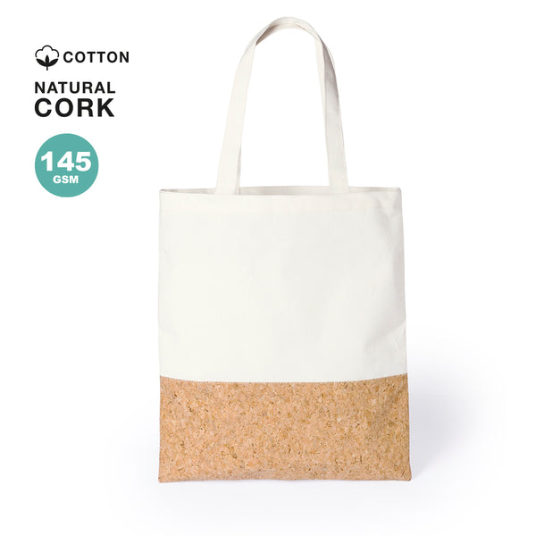 Bag of natural materials in combination of cotton and cork. With long handles, stitched finish and resistance up to 8kg weight.