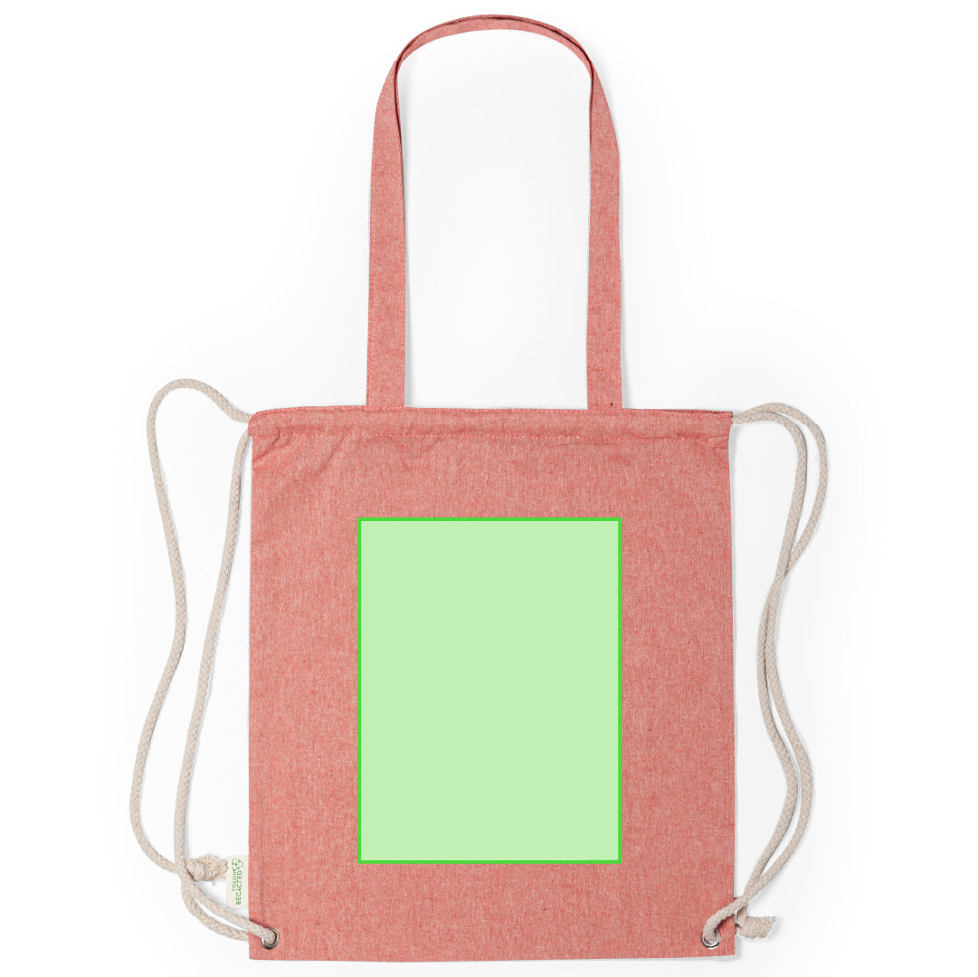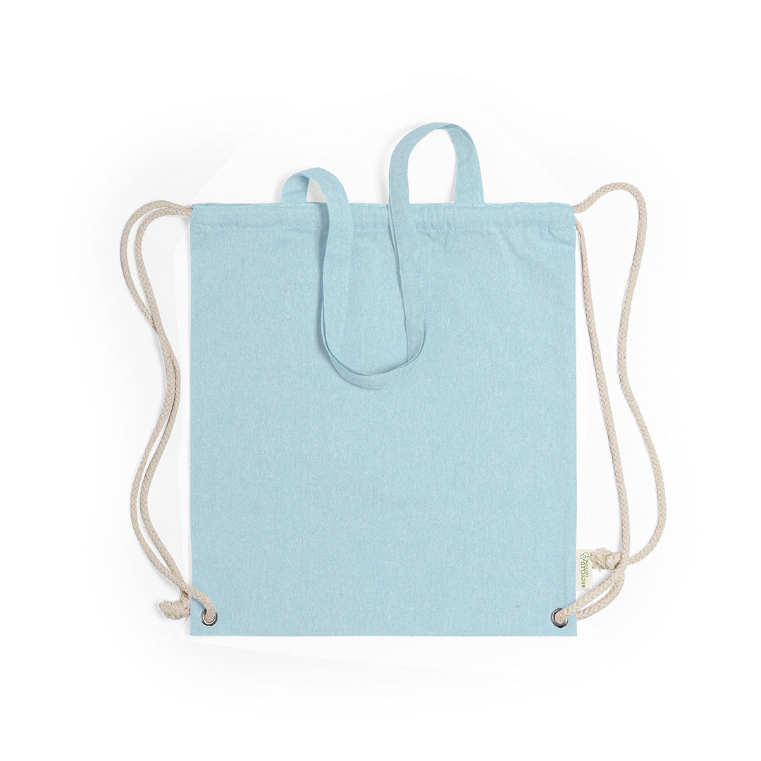 Nature line drawstring backpack bag in durable 140g/m2 recycled cotton, with matching 70 cm lenght carrying handles. Natural color cotton strings, with reinforced metal eyelets and recycled cotton label. Available in a wide range of colours. Resistance up to 9kg in weight.