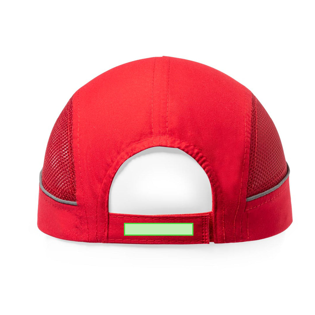 Sports cap made of soft, durable microfibre. With matching sweat mesh on side panels and adjustable velcro fastening. With reflective bands on the sides and available in a wide range of colours -white color for sublimation printing-.