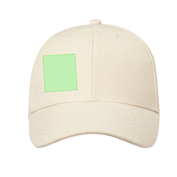 Kid cap with 6 panels in organic cotton. Adjustable closure with bronze coloured metal buckle. Inside label with organic cotton logo.