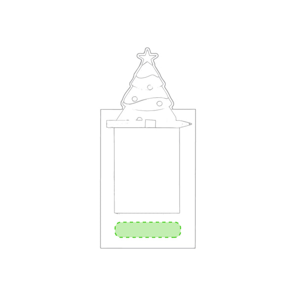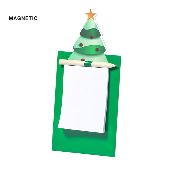 Magnet with notepad in a fun Christmas tree design. Includes 40 plain sheets and natural wood pencil.