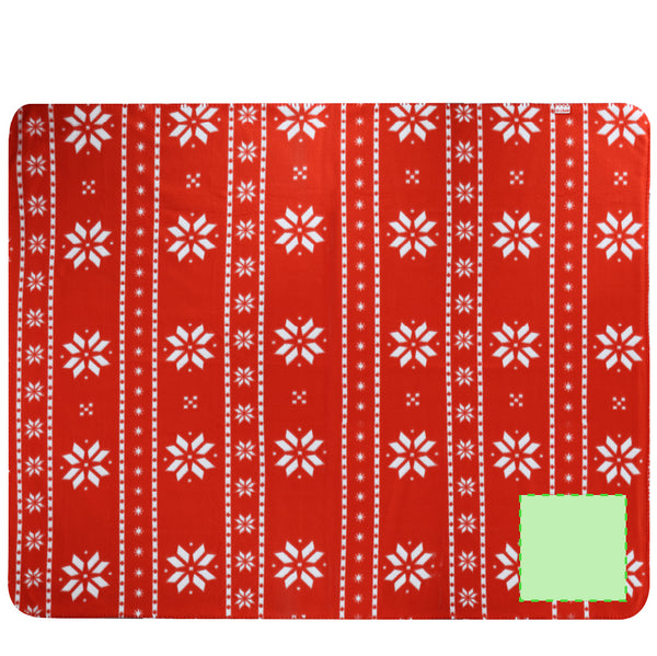 130x160 cm blanket made of soft RPET polyester, with an unique christmas design in red with white Christmas motifs. Made in soft and warm 200g/m2 fleece material with anti-pilling treatment. With RPET label and presented in an individual, white color cardboard box, with matching ribbon.RPET material is made from recycled plastic, thus promoting the reuse of plastic waste and helping the sustainability of the planet.