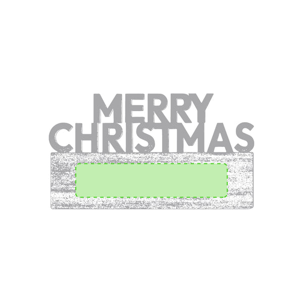 Genuine Merry Christmas magnet made of natural wood, with die-cut text and original bicolor finish. Large branding surface and Made In Europe logo.