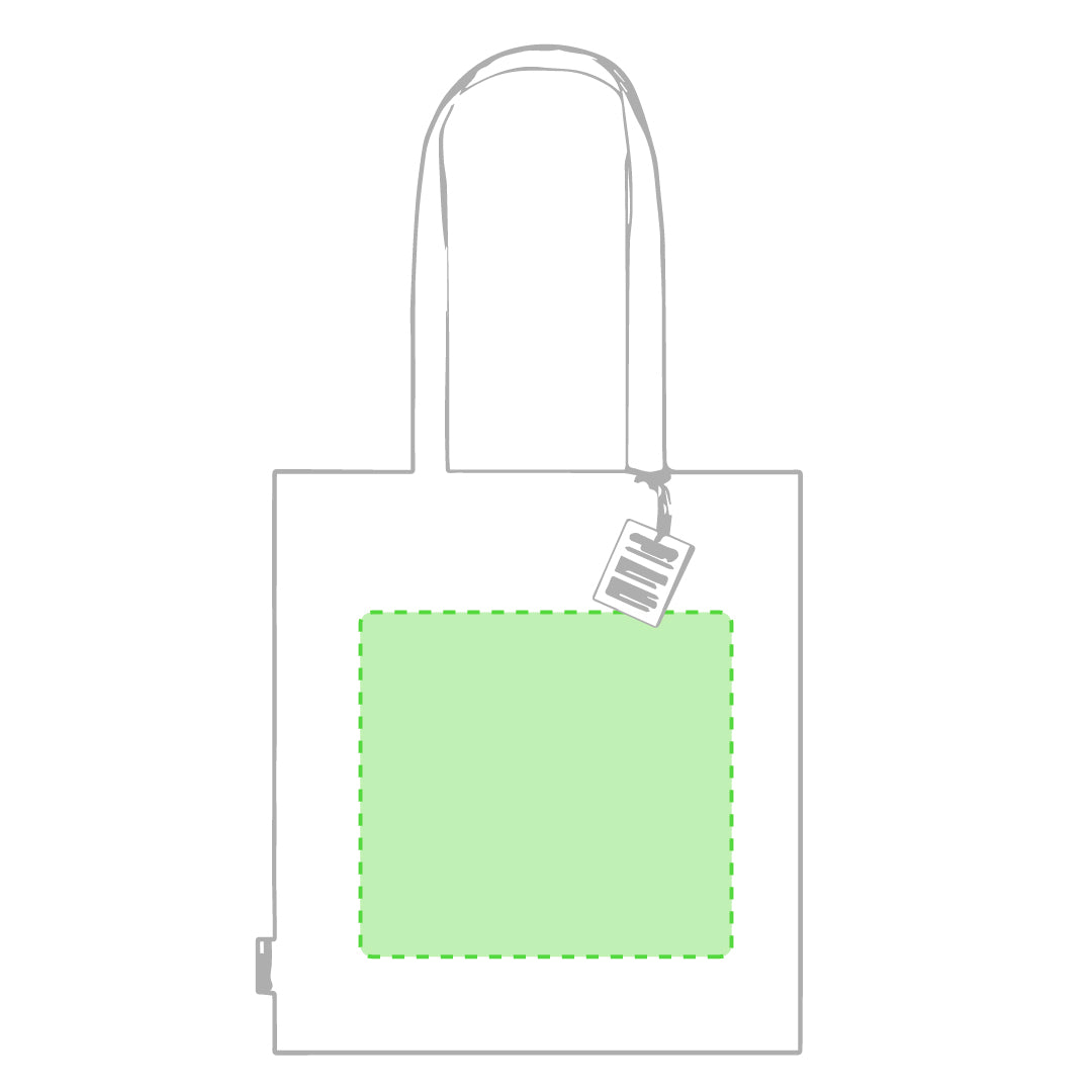 Bag made in organic cotton material 180g/m2, in a natural tone finish. Stitched finish, with medium size, reinforced handles 70 cm in length. Resistance up to 8kg, including organic cotton emblem on label and hangtag in recycled cardboard.