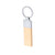 Key ring in a combination of glossy metal and varnished beech wood. With a wide surface for branding and presented in an individual bag with kraft card.