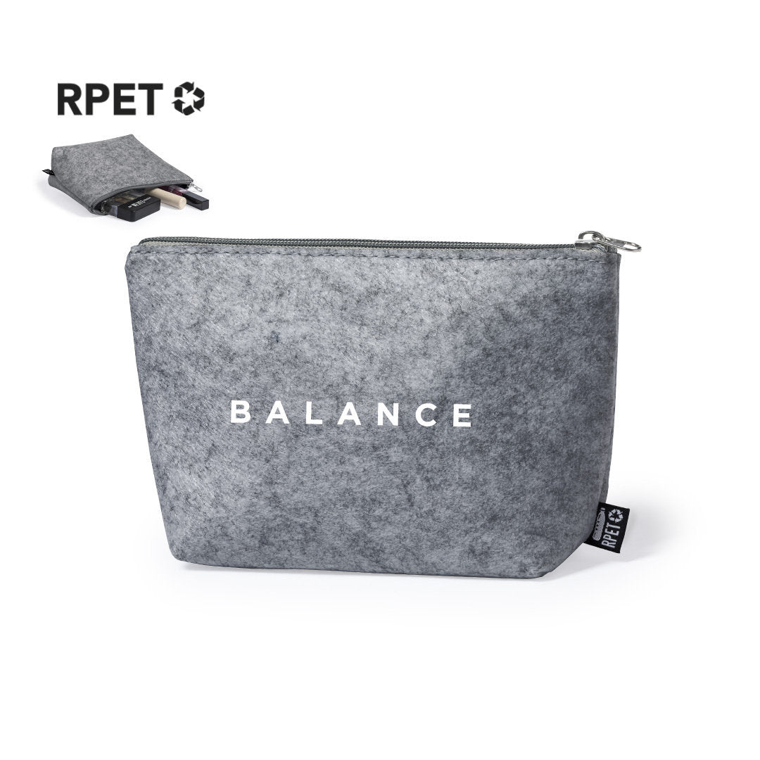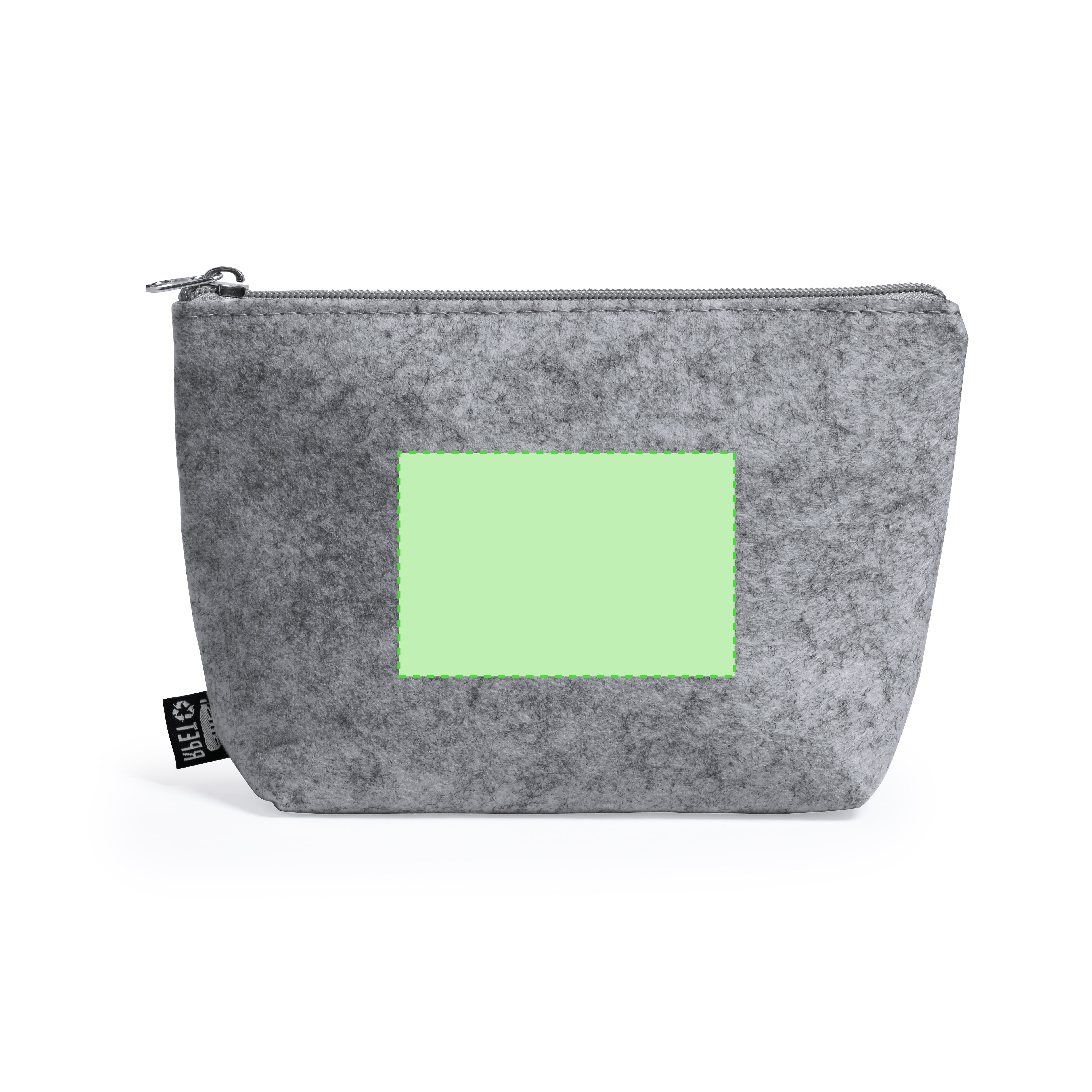 Nature line beauty bag in Felt RPET, the result of the combination of the recycling processes of plastic materials along with the millenary technique of felt manufacturing, resulting in an eco-trend material that, in addition to being of recycled origin, also becomes recyclable. With zip closure, matching zipper puller and outside label with RPET logo.