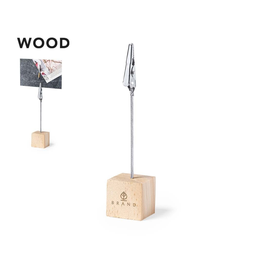 Nature line clip, with resistant base made of natural pine wood. With metal post and clip for a firm attachment of cards, notes, photos...
