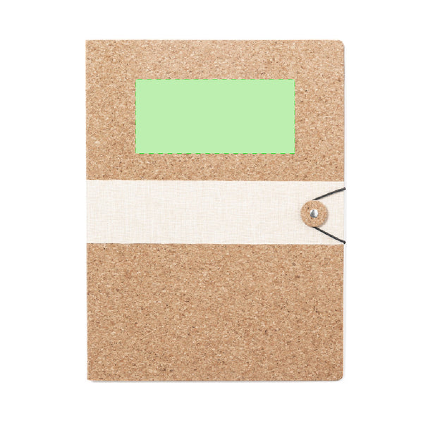 Nature line folder with natural cork outside and central linen band in natural finish. Closure with elastic band.