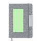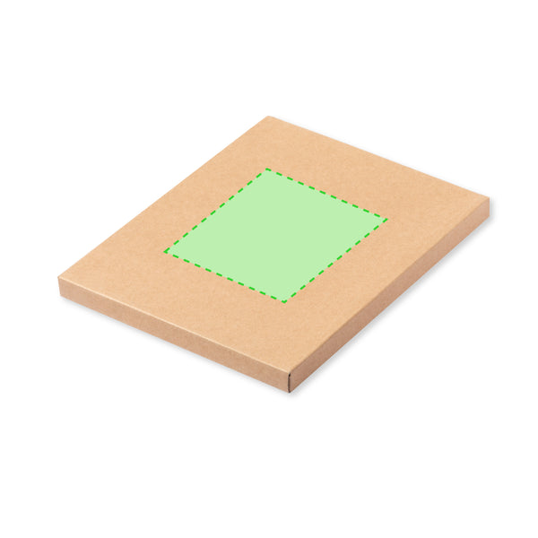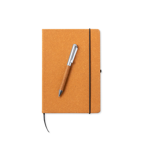 Set of notepad and ball pen in recycled leather. Including:Notepad with hard covers in recycled leather, with 100 inner sheets in striped layout. Including bookmark, elastic binding and ball pen holder in matching color. With the distinctive of recycled leather at the back cover.Ball pen made in chrome plated metal with recycled leather barrel. Stylish metal clip and matching accessories, twist mechanism and blue ink. With the distinctive of recycled leather on the barrel.Set presented in an elegant kraft design case, with independent compartment for notepad and ball pen.Recycled leather recovers the fibers discarded in the manufacturing processes of leather, minimizing the waste of material, contributing to reduce the environmental impact, and preserving at the same time the original features of the leather.