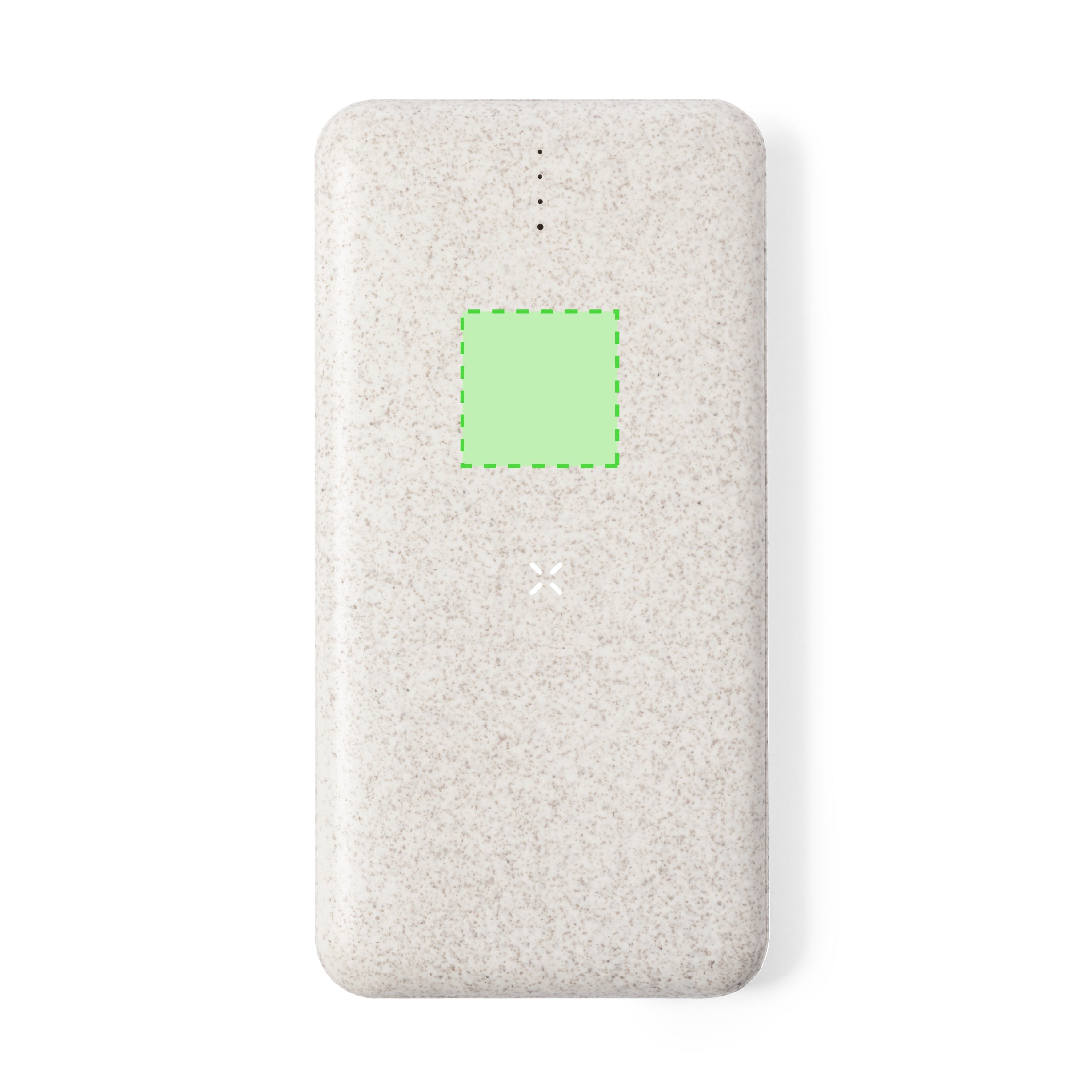 External auxiliary battery 8,000 mAh, with integrated 10W wireless charger. Made of wheat straw, to promote the use of natural raw materials and reduce polluting emissions.2 USB outputs, with dual Type-C input/output connection and LED charging status indicator. Compatible with devices equipped with Qi wireless charging technology, Type-C charging cable included. Presented in an individual kraft box, with instruction manual in English and Spanish. USB C Input/Output: 5-12V DC 3-1.5V, PD18WUSB Outputs: 5-12V DC 3-1.5AThe capacities shown in all our external auxiliary batteries are real, all of them incorporating non-recycled, grade A batteries, with a service life of at least 500 charging cycles, and complying with CE regulations. In addition, they are manufactured according RoHS standards, and in compliance with the following safety requirements: Power bank overcharge protection system. Complete discharge protection system, which increases the durability of the power bank. Blocking system to prevent short circuits. Constant charging transfer system, in accordance with the capacity of the target device.