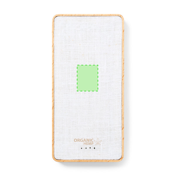 External auxiliary battery with 8,000 mAh. Case in a combination of organic hemp and natural wood. With USB outputs, dual Type-C input/output connection and LED charge status indicator.USB C Input/Output: 5V DC 2.4A. USB A Output: 5V DC 2.4A.Including Type-C charging cable and instruction manual in English and Spanish. Presented in an individual kraft design box. Hemp is obtained from the cannabis plant, which is grown and processed in an environmentally friendly way, obtaining a durable material of a natural and sustainable source. The capacities shown in all our external auxiliary batteries are real, all of them incorporating non-recycled, grade A batteries, with a service life of at least 500 charging cycles, and complying with CE regulations. In addition, they are manufactured according RoHS standards, and in compliance with the following safety requirements: Power bank overcharge protection system. Complete discharge protection system, which increases the durability of the power bank. Blocking system to prevent short circuits. Constant charging transfer system, in accordance with the capacity of the target device.