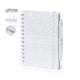 Notepad made in soft RPET felt. With RPET logo on cover. Including:Ring binder of 30 white sheets with single-stripe layout and recycled stamp on both sides.25 medium sticky notes.125 mini sticky notes in various colours.The recycled RPET felt is the result of the combination of the recycling process of plastic materials together with the millenary technique of felt making, resulting in an eco-trend material that, besides being of recycled origin, also becomes recyclable.Presented in an individual recycled bag.