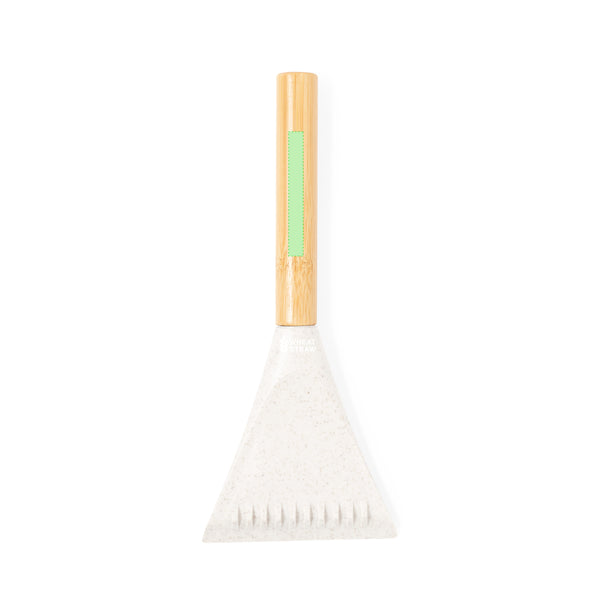 Practical ice scraper made of bamboo and wheat straw. Shovel shaped, with bamboo handle and scratching area made of bamboo and wheat straw, with integrated wipers and saw. Logo on the handle and presented individually in a kraft paper bag.Materials such as bamboo encourage the use of natural raw materials, reducing pollutant emissions. It comes from a highly resistant and versatile plant with rapid growth and regeneration, making of it an excellent alternative to traditional wood.Wheat straw promotes the use of natural raw materials, thus reducing pollutant emissions.