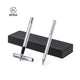 Compact weekly pillbox made of bamboo. Cylinder-shaped case with 7 separate compartments, easily accessible by twisting the lid. Remains closed with a magnetic closure. Presented in a kraft design box.