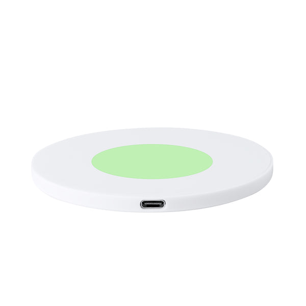 Wireless charger 15W in circular design made of RABS. Compatible with devices equipped with Qi wireless charging technology. Non-slip base, with Type C charger cable included. Presented in an individual kraft design box, with instructions manualin English and Spanish.RABS is a highly recyclable and highly resistant plastic with a multitude of applications that make of it an eco-friendly solution. With RCS certification, guaranteeing its recycled origin.Manufactured according to RoHS standards and in compliance with the following safety requirements: Overheating protection system. Over-charge protection system. Blocking system to prevent short circuits.