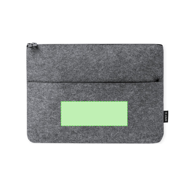 Laptop sleeve made of RPET felt. Padded main pocket with zip closure, for laptops up to 15 inches, and front pocket for smaller items. RPET logo on label.RPET felt is the result of the combination of the recycling processes of plastic materials along with the millenary technique of felt manufacturing, resulting in an eco-trend material that, in addition to being of recycled origin, also becomes recyclable.