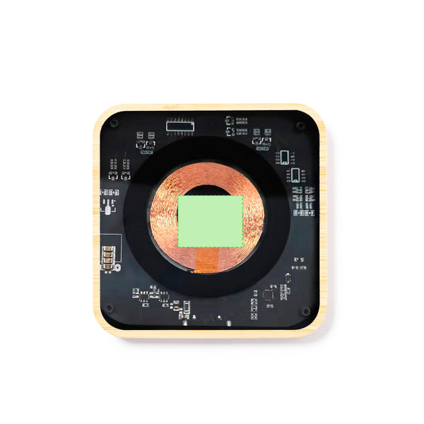 Wireless charger 15W in an original design with a transparent surface, showing the internal components of the device. With square bamboo base and compatible with Qi technology devices.Type C connection, with instruction manual in English and Spanish. Presented in an individual box of kraft design.Materials such as bamboo encourage the use of natural raw materials, reducing pollutant emissions. It comes from a highly resistant and versatile plant with rapid growth and regeneration, making of it an excellent alternative to traditional wood.Manufactured according to RoHS standards and in compliance with the following safety requirements: Overheating protection system. Over-charge protection system. Blocking system to prevent short circuits.
