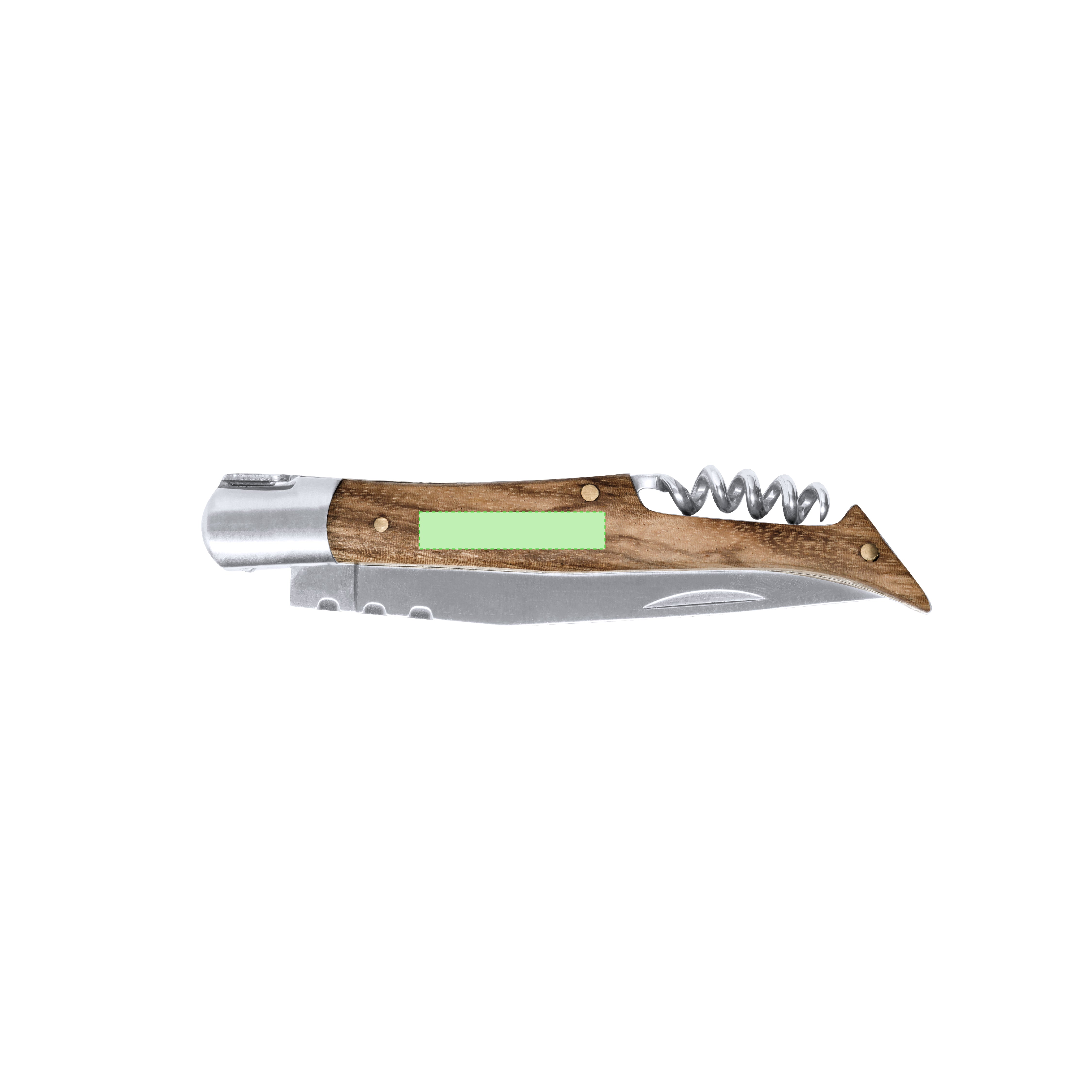 Pocket knife made of resistant stainless steel, with ergonomic handle made of lacquered natural wood and integrated corkscrew. The blade alloy guarantees resistance to corrosion and abrasion, making it ideal for frequent use with hard materials. The blade is of needle point type, which is characterised by its pointed shape with a straight top. Individually packaged in a kraft design box.