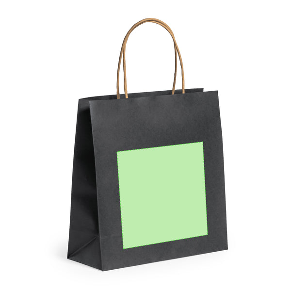 Nature line bag, made of 100g/m2 recycled paper in black finish, with short reinforced handles in natural colour and gusset. Resistance up to 6 kg in weight.