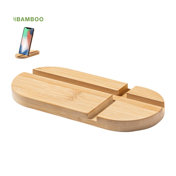 Unique and simple nature line holder for smartphone and tablet. Made of bamboo from natural cuttings. Presented in an attractive individual box with an eco-friendly design.