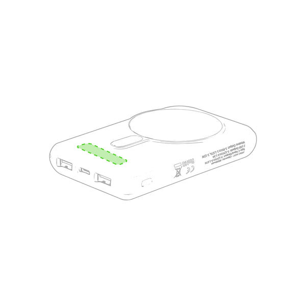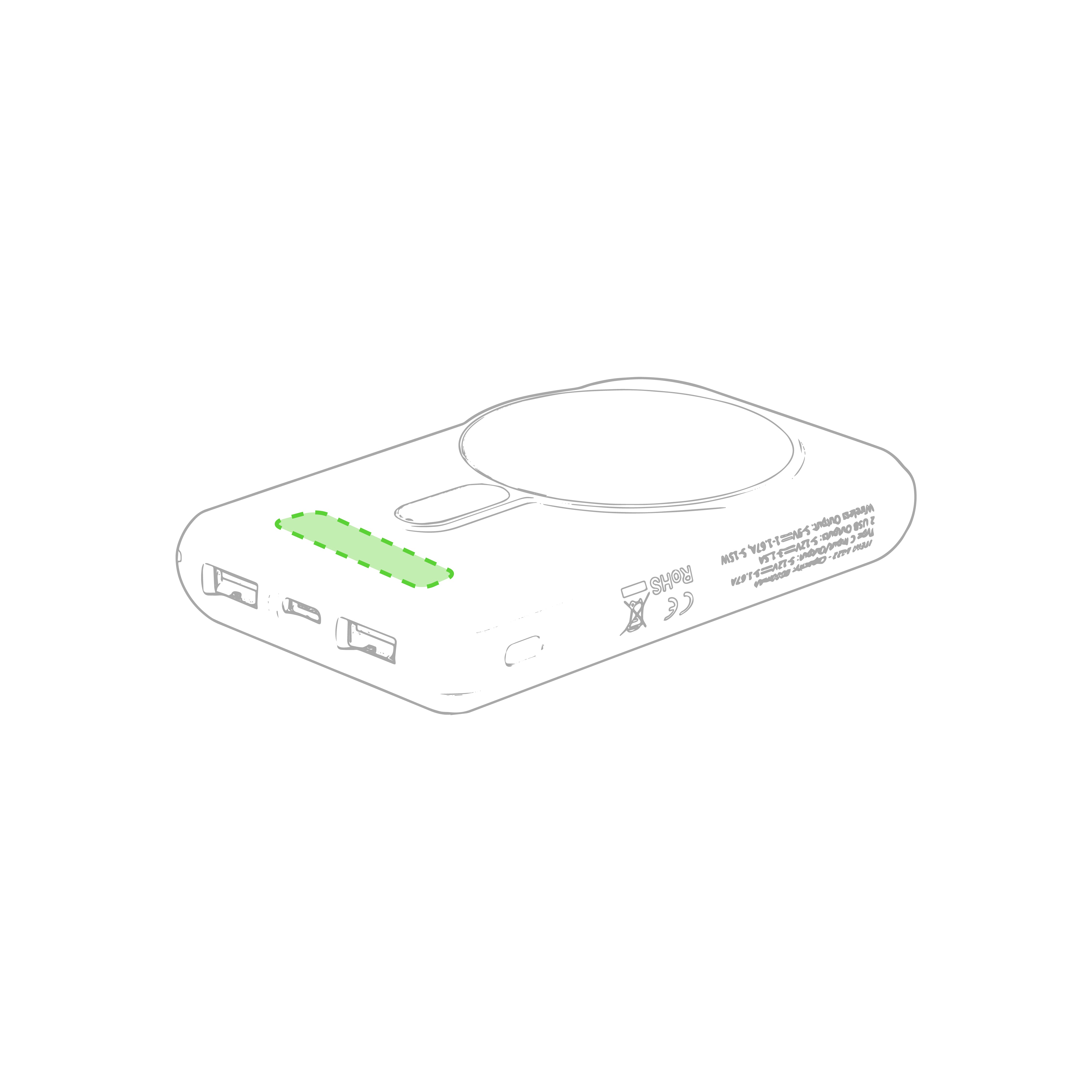 External auxiliary battery with solar recharge and high charging capacity -8,000 mAh-. With integrated wireless charger 15W and magnetic attachment to be able to use the device while charging. In resistant ABS, with input and output connector Type C + 2 USB outputs. Including adhesive ring, being valid for all devices with Magsafe and Qi technology. Presented in an attractive individual design box.The capacities shown in all our external auxiliary batteries are real, all of them incorporating non-recycled, grade A batteries, with a service life of at least 500 charging cycles, and complying with CE regulations. In addition, they are manufactured according RoHS standards, and in compliance with the following safety requirements: Power bank overcharge protection system. Complete discharge protection system, which increases the durability of the power bank. Blocking system to prevent short circuits. Constant charging transfer system, in accordance with the capacity of the target device.