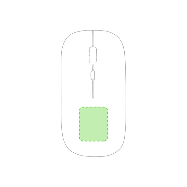 Wireless optical mouse with ergonomic design. Housing made of recycled ABS (RABS) and with RCS certification, which guarantees its recycled origin. USB rechargeable (cable included) and presented in individual eco-design box in kraft cardboard.