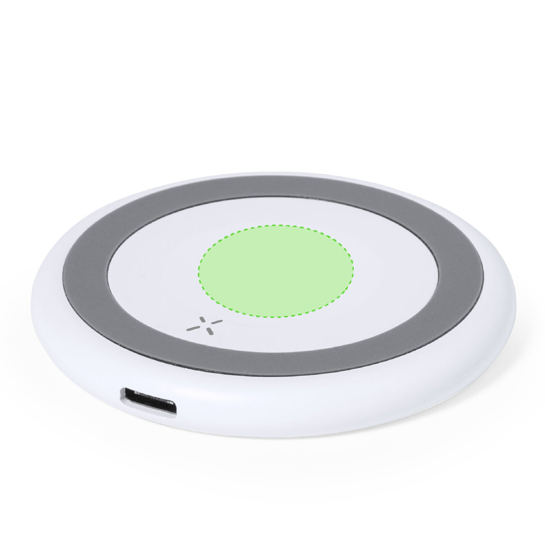 15W wireless charger with round design. Non-slip base and compatible with devices equipped with Qi charging technology. Designed for charging smartphones, headphones and smartwatches. Presented in an attractive kraft design box. Manual available in English and Spanish.