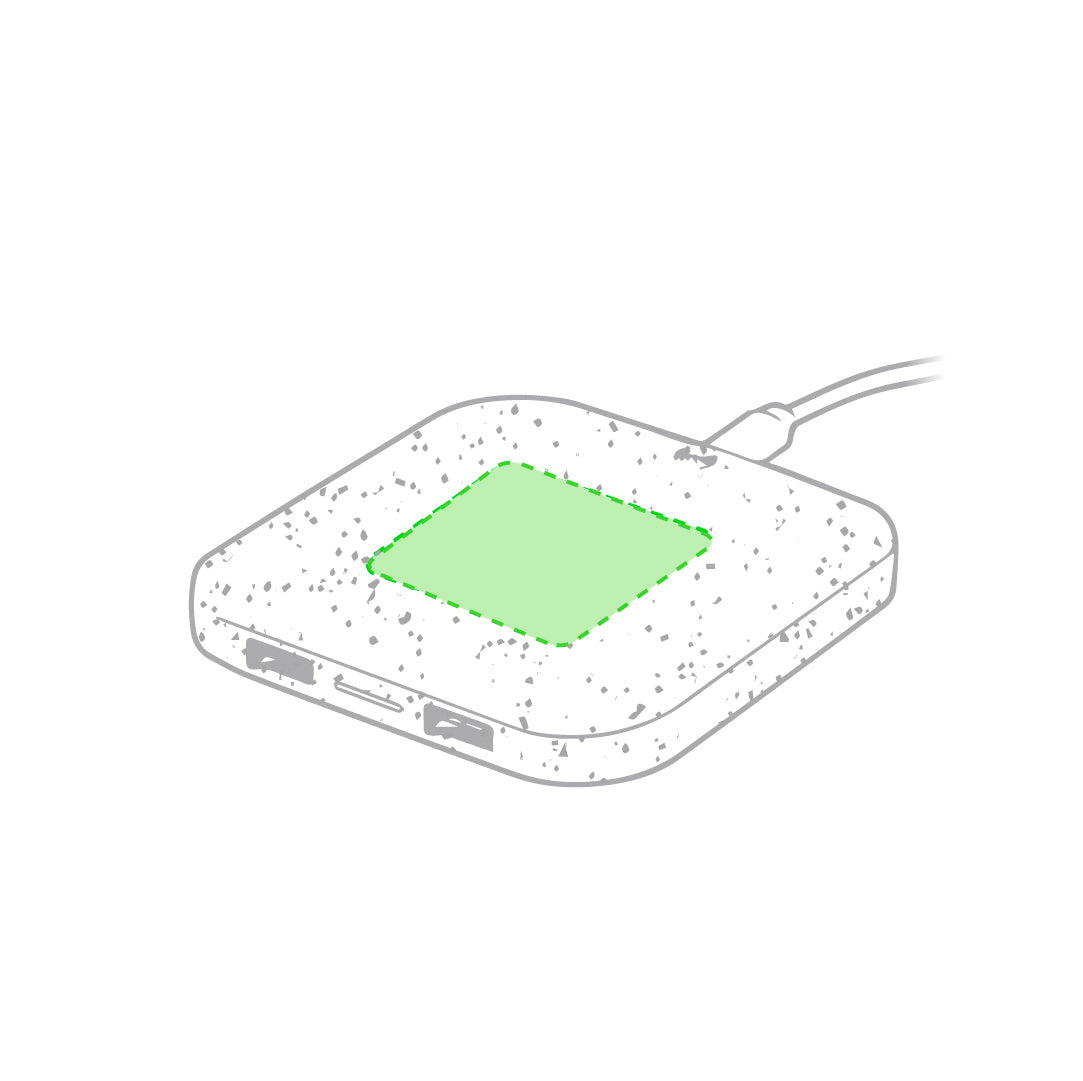 Wireless charger in nature line. Shell in wheat straw, to encourage the use of natural raw materials and reducing contaminant emissions. 2,100 mA ,dual USB output for simultaneous charging of up to 3 devices (1 device wireless charge and 2 devices via cable). With non-slip base and compatible with devices equipped with wireless charging technology. Presented in an attractive, eco design box.