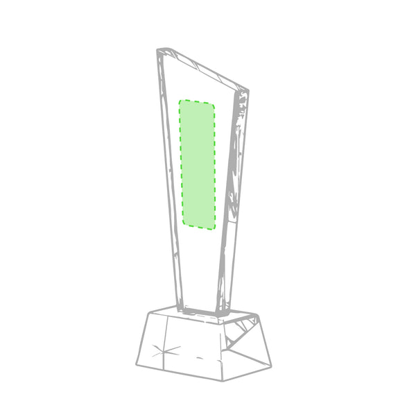 Thick glass trophy with exclusive design and resistant base. Specially designed for laser engraving and presented in a protective case made of durable cardboard, with magnetic closure and foam, die-cut interior.