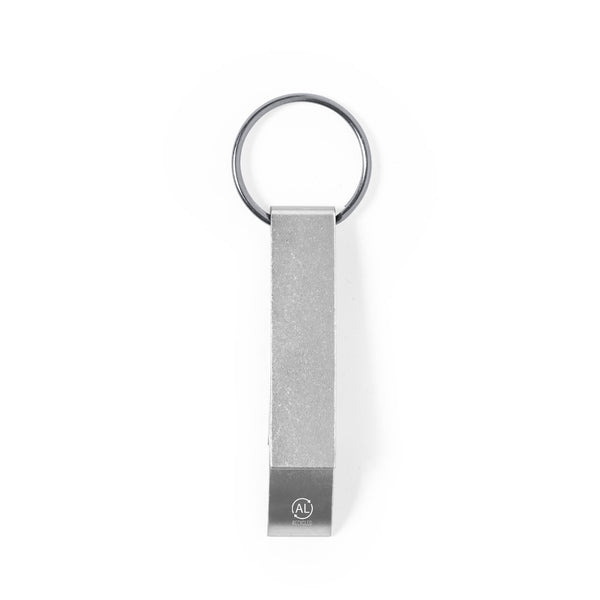 Keyring opener in recycled aluminium. With can opener accessory and specially designed for laser printing. Available in a wide range of metallic colours, with the recycled aluminium distinctive. Recycled aluminium is a material with almost infinite recycling possibilities, with no loss of its original properties and less energy consumption in the process.