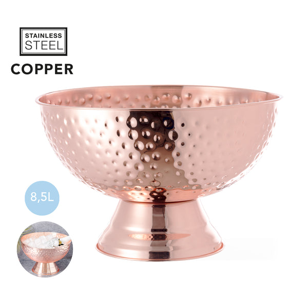 Elegant champagne cooler made in stainless steel with galvanised copper coating. Capacity 8.5 l. With an attractive design in glossy finish, it is the perfect accessory to serve cold drinks with style. Presented in an exclusive individual black design box.