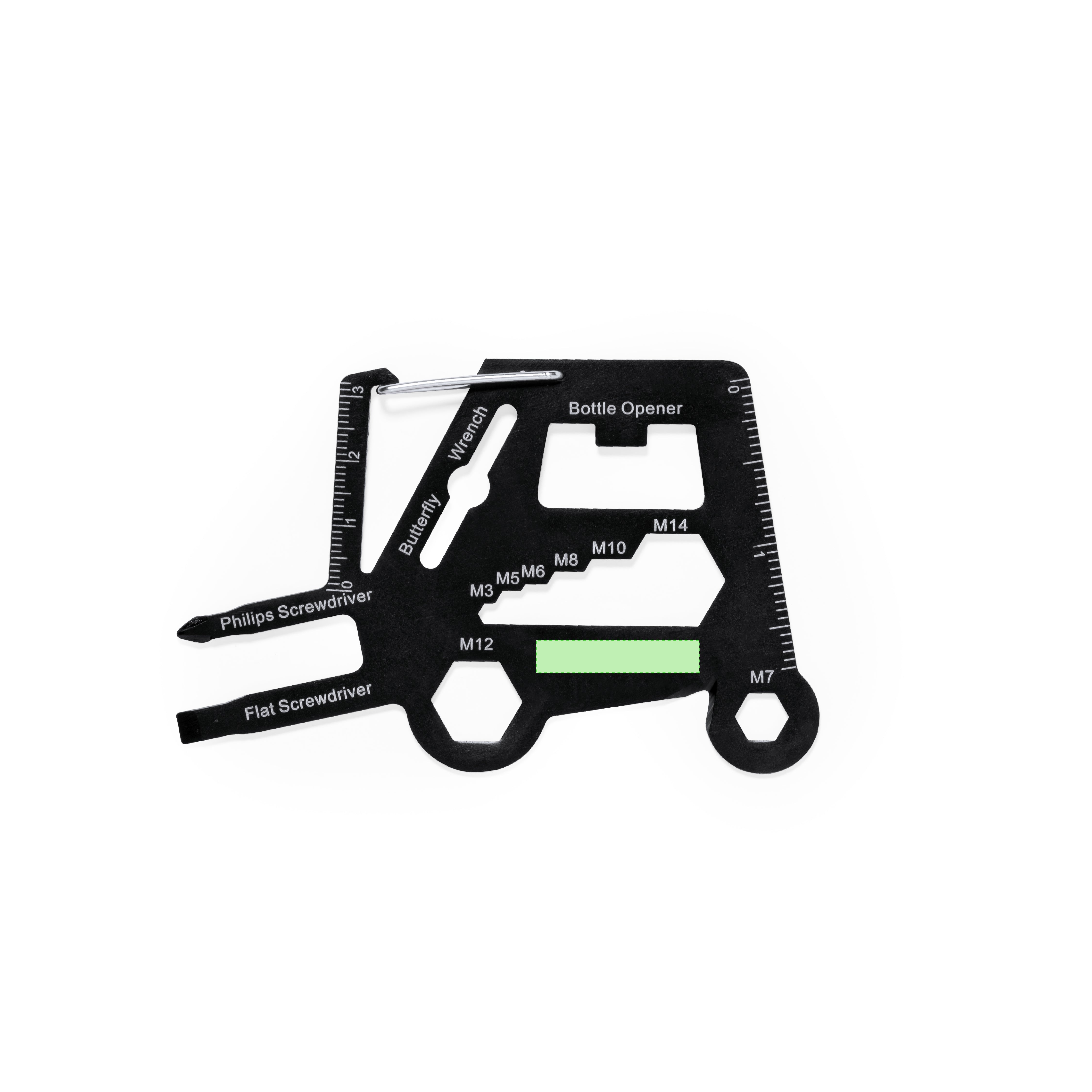 Practical and unusual stainless steel multi-tool in the shape of a mechanical bull. With 16 functions, among others: flat and philips screwdriver, hexagon spanner in various sizes, ruler, box opener and bottle opener. In addition, it has a carabiner for easy transport. Presented in a Recycled paper bag.