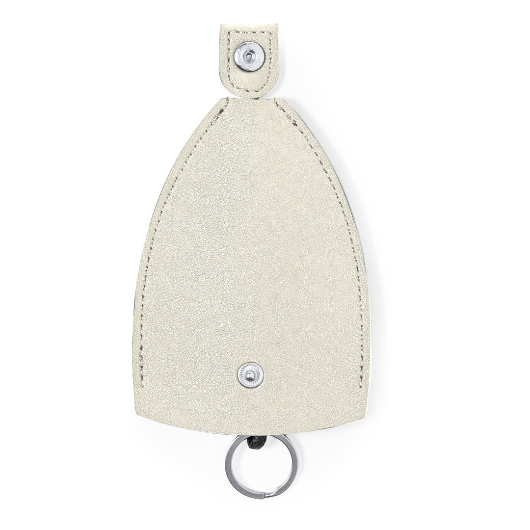 Cool keychain with pouch for key protection. With Closing mechanism by pulling the string, with button closure. Available in a wide range of colors and presented in a Recycled paper bag.