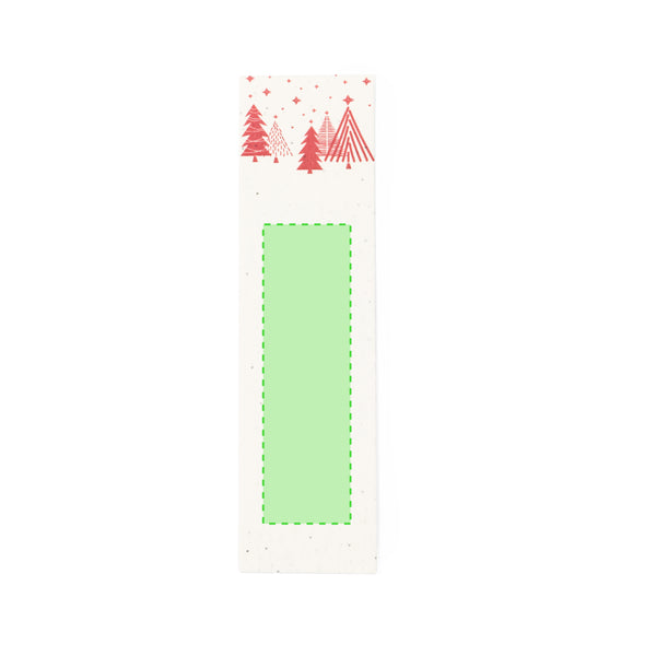Christmas bookmark made of seeded paper with Christmas design. The paper includes petunia seeds, making it plantable paper at the end of its lifespan. With planting instructions on the back cover and large branding area.