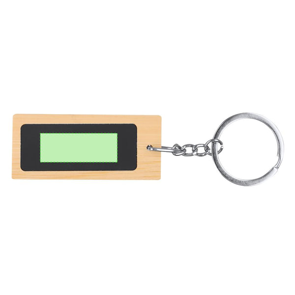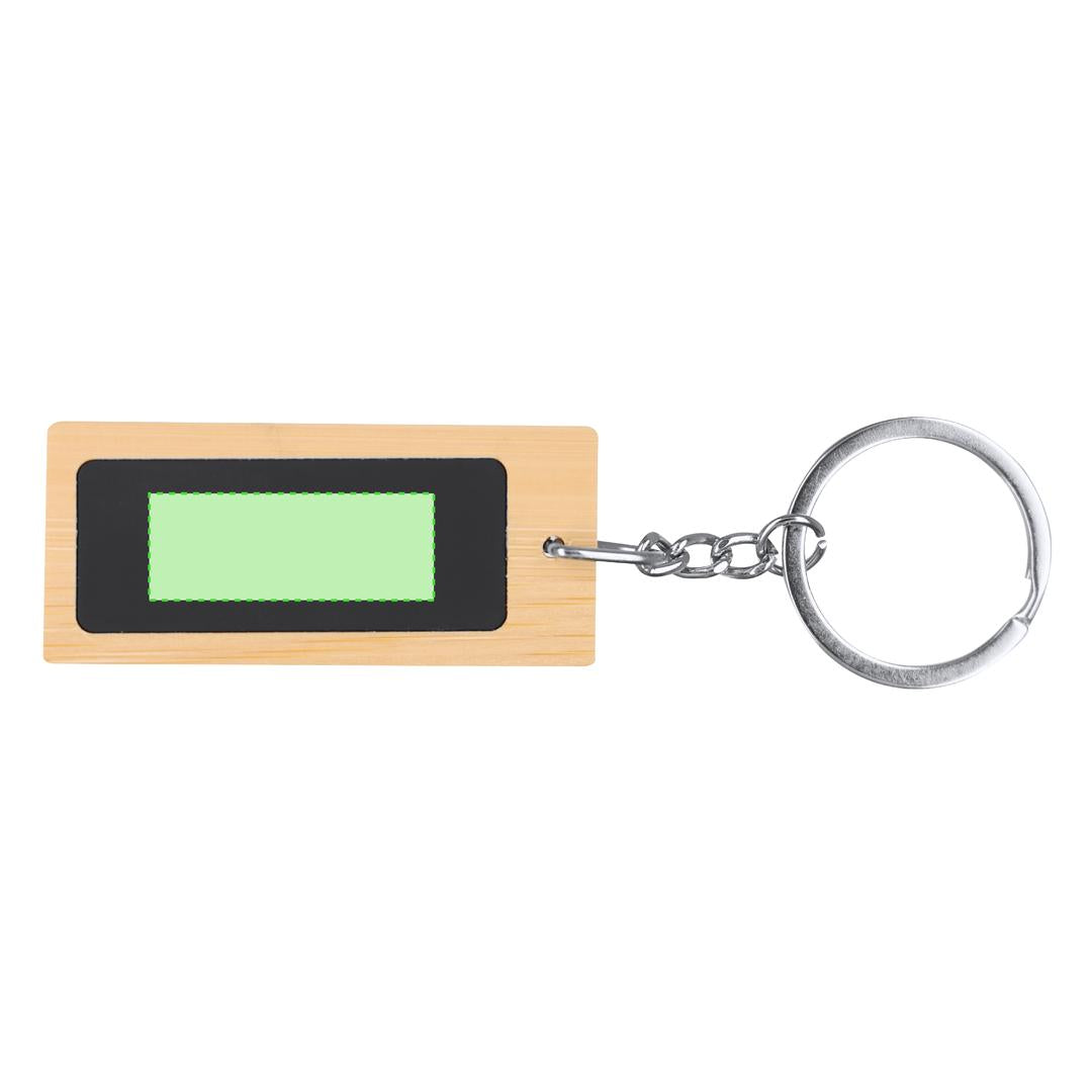 Bamboo and metal keychain. With an area in a rubber finish, ideal for laser engraving with a silver mirror effect.Materials like bamboo promote the use of natural raw materials, reducing pollutant emissions. It comes from a resilient and versatile plant, with fast growth and regeneration, making it an excellent alternative to traditional wood.