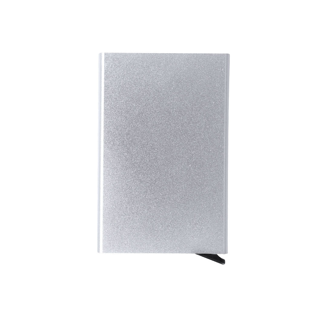 Cardholder made from recycled aluminum. Capacity for up to 10 cards, with an ingenious sliding mechanism for easy access to the cards. RFID (Radio Frequency Identification) security technology that keeps your identity transmission devices secure. RFID and Recycled Aluminum labels.Recycled aluminum is a material with almost infinite recycling possibilities, without losing its original properties and consuming less energy in the process.GRS certification (Global Recycled Standard), which guarantees the recycled origin of the material used to manufacture the product.