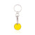 Metallic keychain coin in fun design in varied colors with removable coin and closure carabiner.