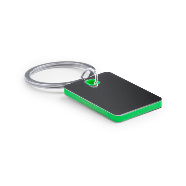 Stainless steel keychain in bicolor design, in varied colors and especially designed for laser printing.