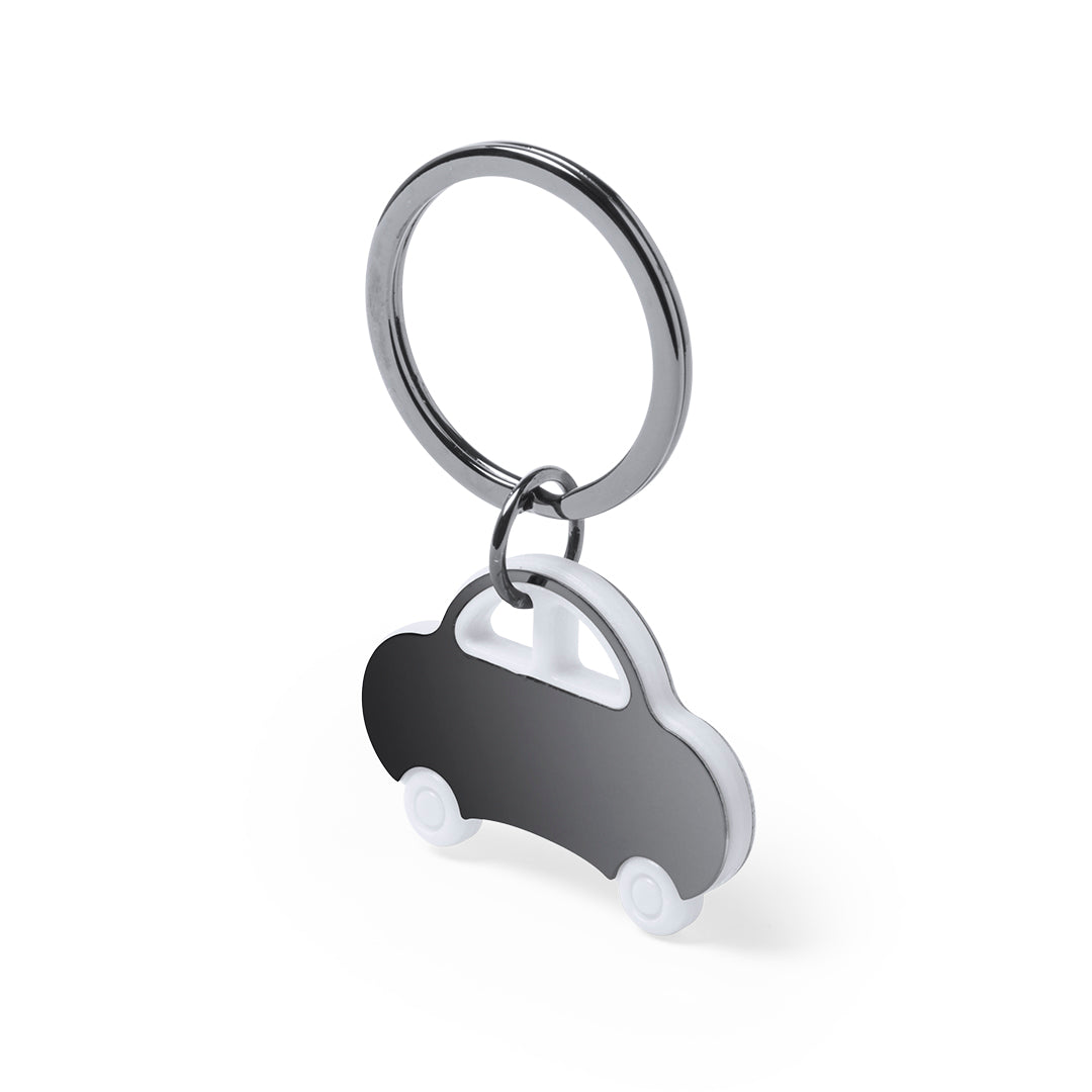 Car keychain in bicolor design with stainless steel body in a varied color combinations.