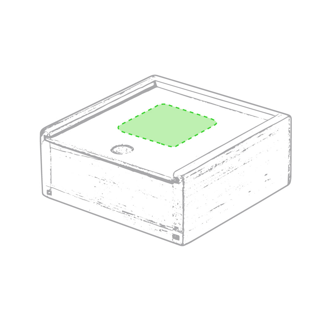 Board game in wooden material, presented in an individual wooden case with sliding cover.